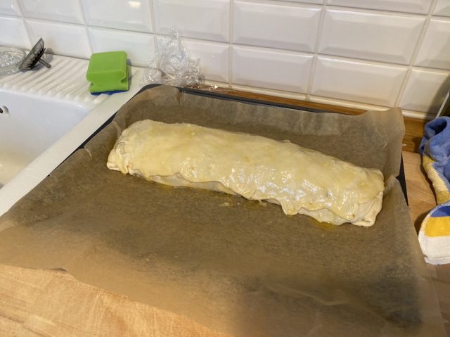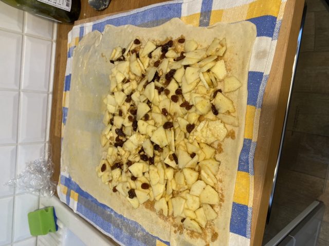 Zubereitung im Rahmen des Strudelteig-Rezeptes: