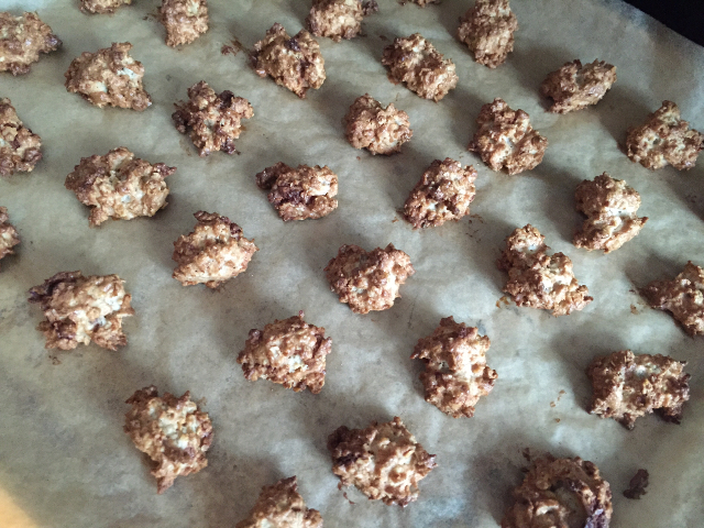 Zutaten für 1 Backblech: 100 g feine Haferflocken 100 g grobe Haferflocken 150 g körniger Frischkäse 125 g Geflügelleberwurst 1 El Sonnenblumenöl 1 Ei Zubereitung: Alle Zutaten gut verkneten. Walnussgroße Kugeln formen und diese...