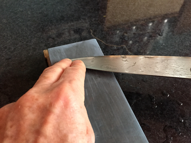 Messer schleifen, wir reden von japanischen Messern mit doppelseitigen Schliff, sieht einfach aus, ist es aber nicht. Man benötigt eine Menge praktische Übung, um das gewünschte „scharfe“ Ergebnis zu erzielen. Zuerst benötigt man natürlich...