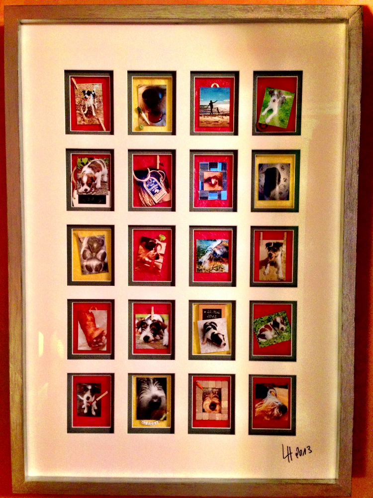 Unser neueste Arbeit in 3D mit dem Titel „Stationen“. Die 20 Felder hinter einem Doppelpassepartout zeigen Bilder, Grafiken und Objekte aus dem Leben unserer Hündin Alexxa. Die Größe der Arbeit beträgt 70 x 100...