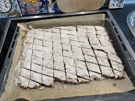 Zutaten für ein Blech: 120 g Butter 240 g Zucker 3 Eier 1,5 TL Zimt 1,5 TL Kakao 150 g Zitronat 150 g Orangeat 150 g Korinthen 150 g Mandeln 150 g Walnüsse 300...