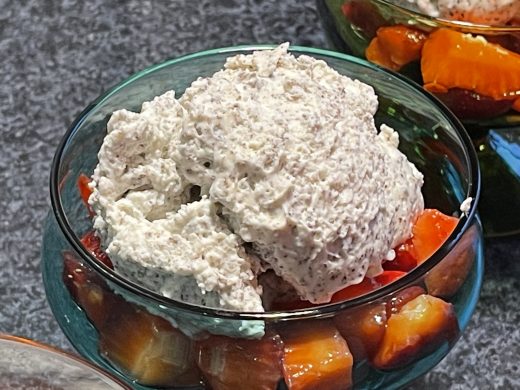 Zutaten für 4 Personen: 250 g gut ausgedrückter Quark, 20% Fett 65 g Zucker 1 Limone Mark von einer Vanilleschote 1/2 Päckchen Mohn-Back 2 Blatt Gelatine 200 ml geschlagene Sahne 250 g Erdbeeren 🍓...