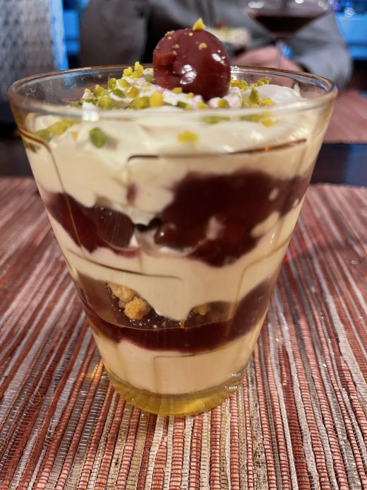Zutaten für die Kirschsauce: 200 g abgetropfte Kirschen aus dem Glas 150 ml Glühwein 1–2 El Amaretto 5 g Speisestärke 20 g brauner Zucker etwas geriebene Zitronenschale etwas Zimt Vanille für die Creme: 400...