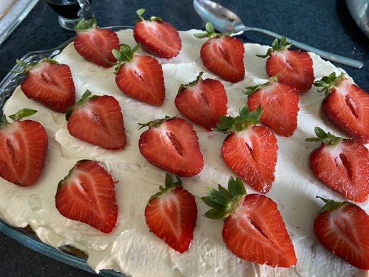 Zutaten für eine Auflaufform 16 x 26 cm: 250 ml kalter Espresso 4 cl Amaretto 500 g möglichst kleine Erdbeeren Abrieb einer Zitrone 500 g Mascarpone 80 g Puderzucker 200 ml Schlagsahne 1 Pk....