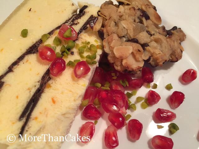 Das Dessert zum weihnachtlichen Familienfest. Zutaten für zwei Kastenformen von 26 cm (ca. 16 Personen): 200 g Zartbitterschokolade 6 unbehandelte Orangen 4 Eier 2 Eigelb 200 g Zucker 2 EL Orangenlikör 600 ml Sahne Granatapfel 16...