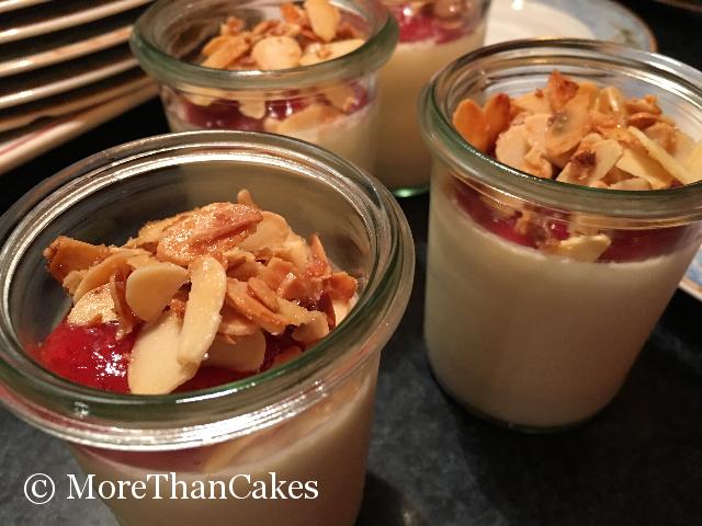 Zutaten für 8 Weckgläser je 100 ml: 1 Vanilleschote 1 Tonkabohne 600 ml Sahne 200 ml Milch 50 g Zucker 3 Blätter weiße Gelantine 200 g gefrorene Erdbeeren 50 g gehobelte Mandeln etwas Zucker...