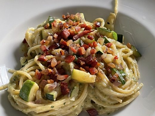 Die Kombination aus Pasta und Zucchini findet man in vielen Gerichten der mediterranen Küche wieder. Die Art der Zubereitung als Crema gibt dem Gericht aber ein gewisses Extra. Zutaten für 2 Personen: 250 g...