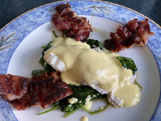 Zutaten für 2 Personen: Sauce Hollandaise von Lukull Kochschinken, Parmaschinken oder Bacon Kräuter (Kresse oder Schnittlauch) 2 Brötchen nach Wahl oder englische Muffins 2 Eier Salz Weißwein- oder Apfelessig Zubereitung: Wasser in einem Topf...