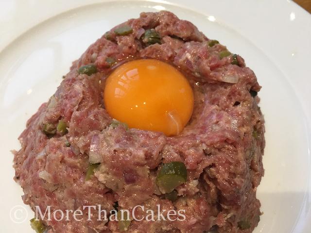 Zutaten für 2 Personen: 2 Schalotten 8 Cornichons 4 Sardellen 2 Stiele Petersilie 300 g durchgedrehtes Beefsteak 2 Eigelb Salz Pfeffer 1 El Senf 1 El Kapern etwas Worchestersoße etwas Olivenöl Zubereitung: Schalotten schälen...