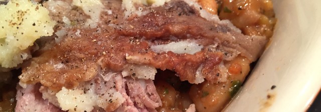 Für den herzhaften Bohnentopf, das Cassoulet, das unter ihrem Fett vergrabenen Entenfleisch herausnehmen und auf weißen Bohnen erwärmen. Sie benötigen hierzu: