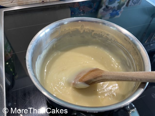 Für die Creme 2/3 der Sahne mit Zucker, Vanille und einer Prise Salz in einer Kasserolle erhitzen. In der restlichen Sahne die Speisestärke glatt rühren und unter die heiße Sahne rühren. Rasch, unter stetem Rühren, zum Kochen bringen, bis eine dicke Creme entstanden ist.