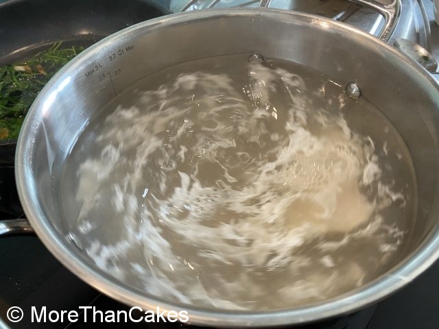 Wasser in einem Topf zum Kochen bringen, dann die Hitze etwas herunterdrehen. Eier einzeln in Tassen aufschlagen. Das Wasser salzen, einen Schuss Essig dazugeben und mit einem Löffel rühren, sodass ein Wirbel entsteht. Die Eier eins nach dem anderen hinzugeben. Anfangs schwimmen in der Regel ein paar Eiweißfäden zur Seite, und man denkt, man hätte versagt. Dann sorgt der Wirbel dafür, dass sich das Eiweiß ums Eigelb legt. Es hilft, den Wirbel mit einem Löffel weiter anzutreiben. In drei bis vier Minuten ist ein mittelgroßes Ei fertig gekocht und kann aus dem Wasser genommen werden.