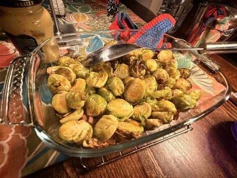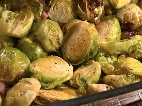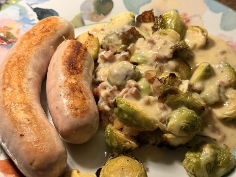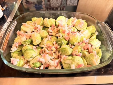 Gebackener Rosenkohl mit Speck und Senfsoße