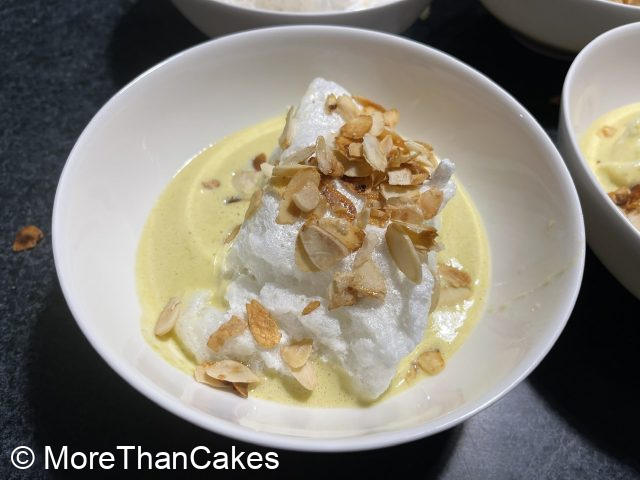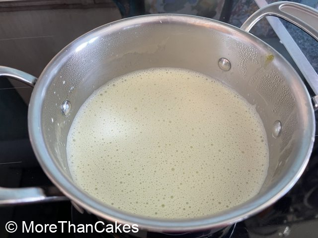 Vorbereiten Sie zuerst die Crème Anglaise à la pistache: