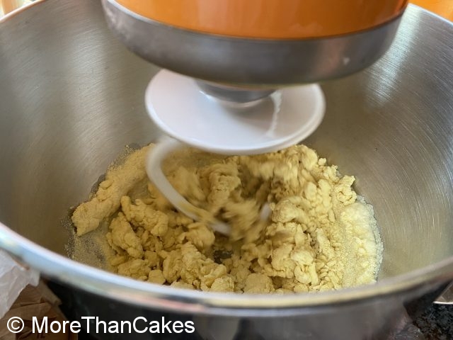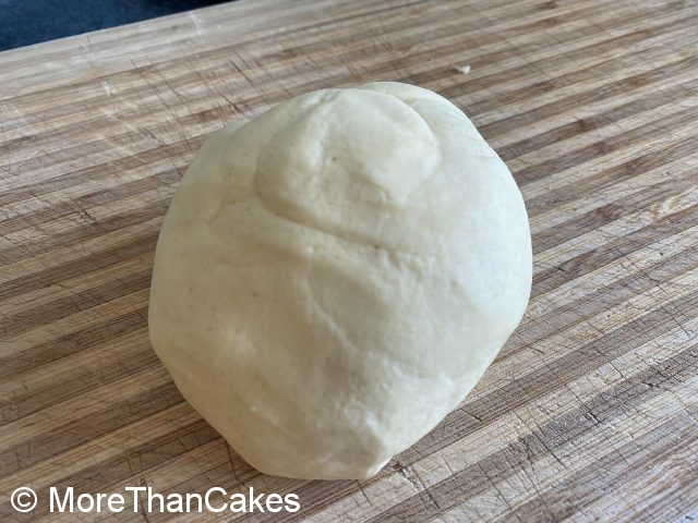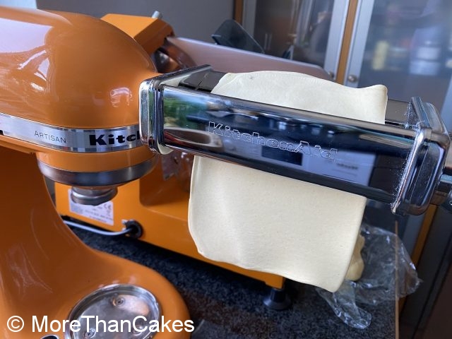 Hartweizengrieß, Wasser, Salz und Olivenöl in die Rührschüssel der KitchenAid geben und circa 3 Minuten mit den Knethaken bei Stufe 2 kneten. Achten Sie darauf, dass kein Grieß am Schüsselrand kleben bleibt. Wenn Sie das Gefühl haben, der Teig ist zu trocken, fügen Sie vorsichtig ein bisschen lauwarmes Wasser hinzu. Danach den Teig rund 5 Minuten mit der Hand kneten. Ist der Teig krümelig, kneten Sie ihn vorsichtig weiter, damit er nicht auseinanderbricht. Der Nudelteig ist fertig, wenn er außen trocken ist und nicht mehr an den Fingern klebt. Den fertigen Teig in Frischhaltefolie wickeln und nicht länger als eine Stunde bei Zimmertemperatur ruhen lassen.