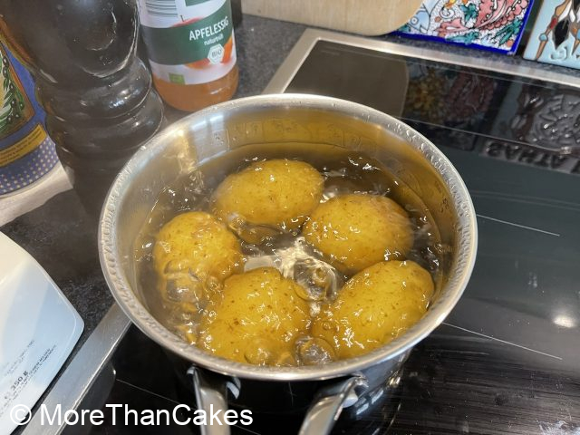 Etwas gesalzenes Wasser zum Kochen bringen und die Gnocchi darin garen. Schwimmen sie an der Oberfläche, sind sie fertig und können mit einer Schaumkelle abgeschöpft werden.