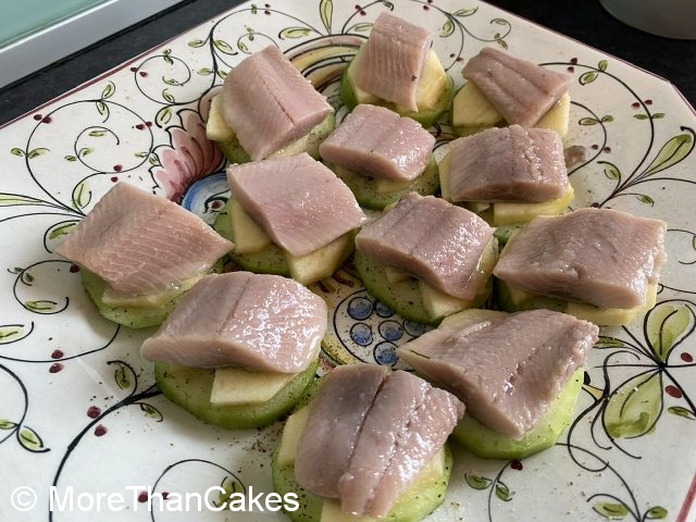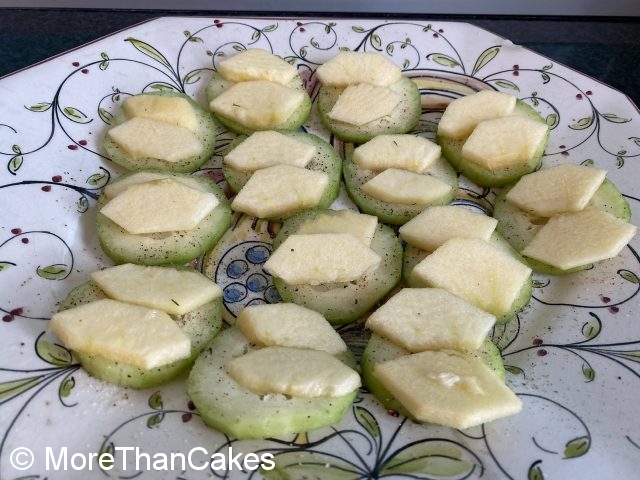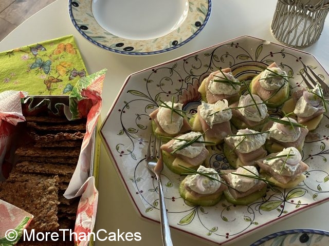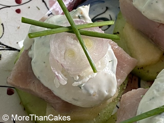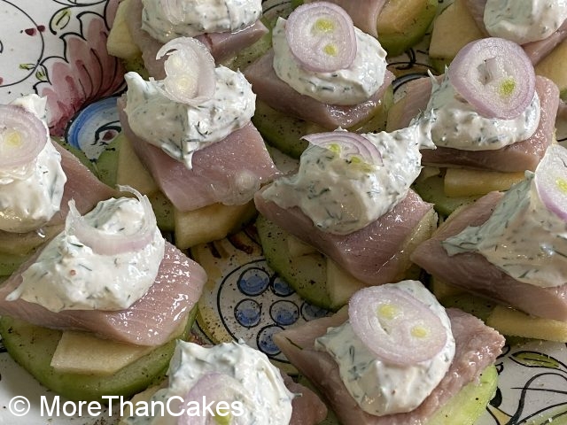 Matjes Häppchen auf Gurken-/Apfeltaler