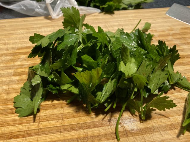 eine Hand voll glatte Petersilie