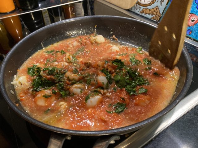 „Alla diavola“ bedeutet, dass es sich hier um ein pikantes Gericht handelt. Wer es nicht so pikant mag, nimmt weniger Peperoncino oder lässt diesen ganz weg. Der intensive, volle Geschmack dieses Gerichts geht dadurch nicht verloren, denn der entsteht durch die Verbindung der kleine Kraken mit den Tomaten.