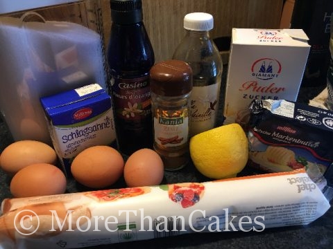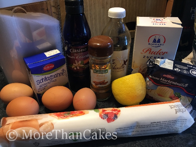 Sahne mit Eigelb, Zimt, Orangenblumenwasser, Vanille und Zitronenschale gut vermengen.