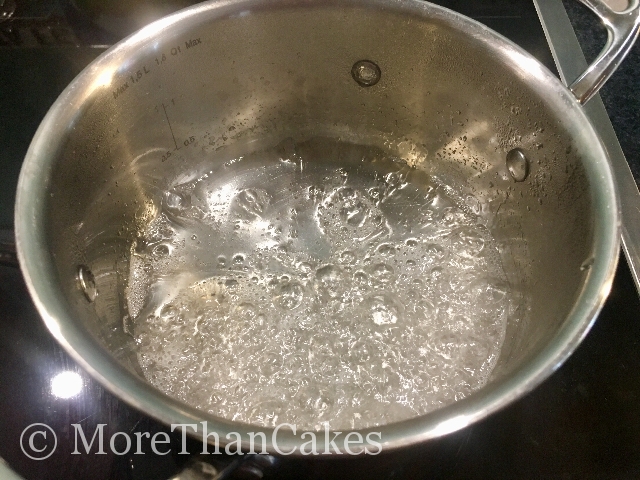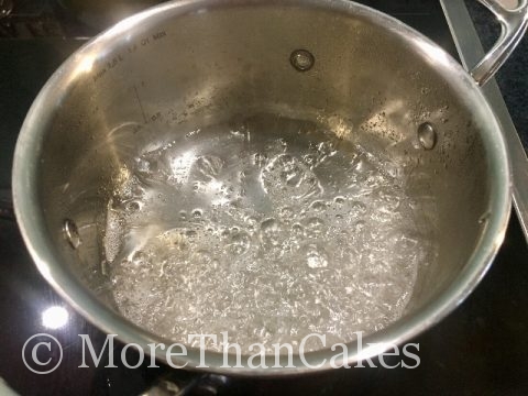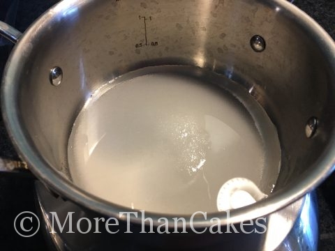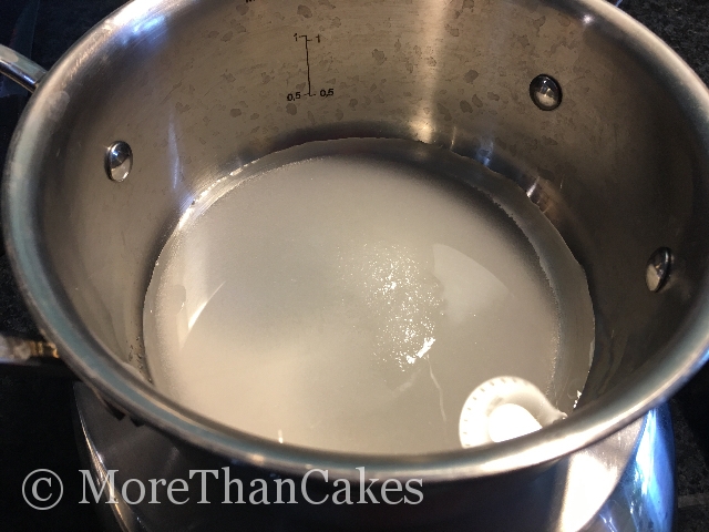 Wasser und Zucker erhitzen, dabei wenig umrühren, bis nach etwa 6 Minuten Kochzeit ein feiner Sirup entsteht.