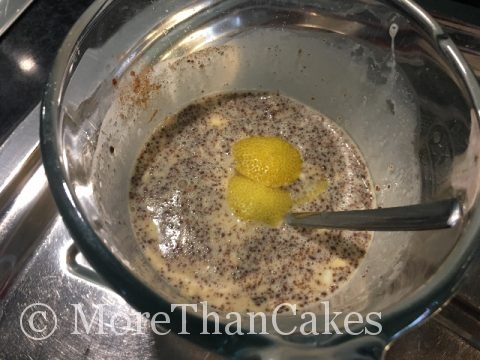 Dann die abgekühlte Creme, die Zitronen 🍋 schale entfernen, gleichmäßig zu 3/4 in die Muffinform einfüllen, da sie beim Backen noch etwas aufgeht.