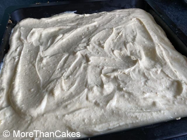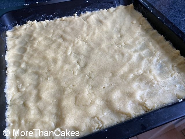 Mehl, Zucker und 300 g Butter in eine Schüssel geben. Am besten mit den Händen zu einem Streuselteig verarbeiten. 2/3 der Streusel auf ein gefettetes, tiefes Backblech verteilen. Kurz mit den Händen flach drücken, sodass eine glatte Teigfläche entsteht. Im heißen Ofen bei 180 Grad (Ober-/Unterhitze) auf der mittleren Schiene 12-15 Minuten vorbacken. Etwas abkühlen lassen.