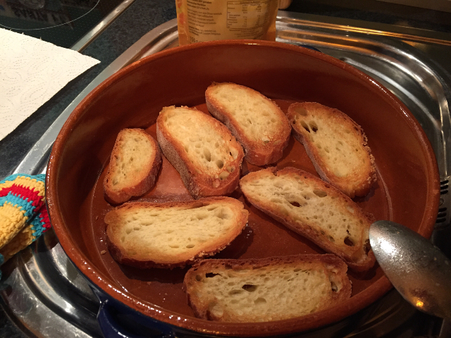 Mangold putzen, in grobe Streifen schneiden. In den Topf geben, weitere 30 Minuten mitgaren. Die Hälfte der Bohnen pürieren. Zusammen mit den ganzen Bohnen untermischen. 15 Minuten offen weiter köcheln. Suppe mit Thymian, Salz und Pfeffer abschmecken und über Nacht kalt stellen. Vor dem Servieren die Suppe im Topf erwärmen und nochmals abschmecken. Mit Brotscheiben lagenweise in eine große Keramikschüssel schichten und mit Parmesan bestreuen. Alles auf der mittleren Schiene im Backofen bei 200 Grad (Ober-/Unterhitze) ca. 30 Minuten kross backen. Auf Tellern verteilen und mit frischem Olivenöl beträufeln.