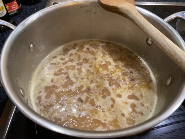 Den fertigen Reis und die Salsiccia dazugeben, untermengen und servieren.
