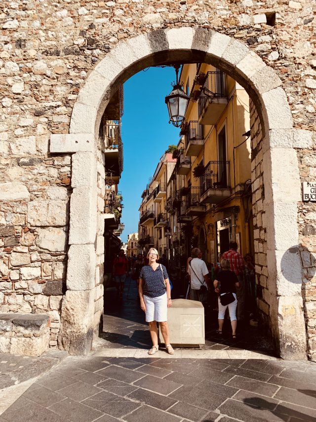 Danach ging es weiter nach Taormina. Die Stadt liegt auf einer Anhöhe über dem Meer und hat eine pittoreske mittelalterliche Altstadt, die wir auf eigene Faust erkundeten.