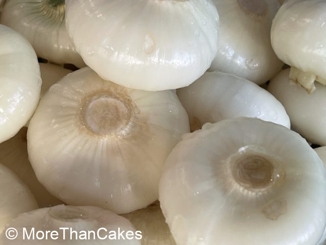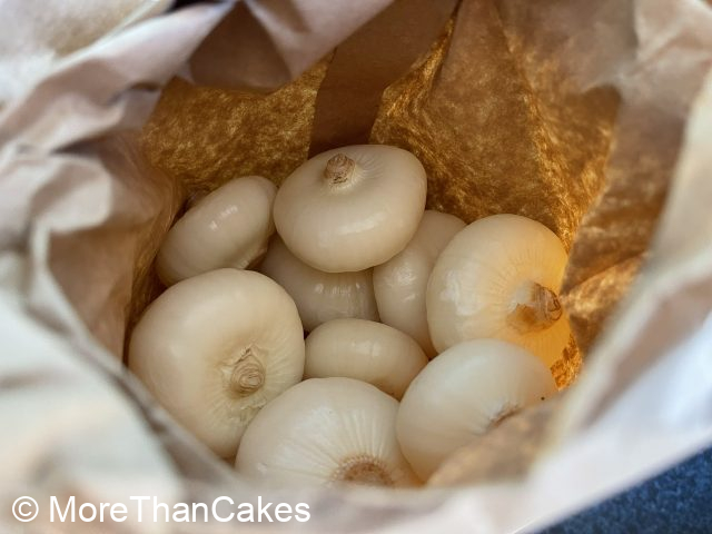 Die kleinen Perlzwiebeln sind hier bei uns leider nicht oft zu bekommen. Als Ersatz eignen sich Schalotten oder Cipollini am besten.