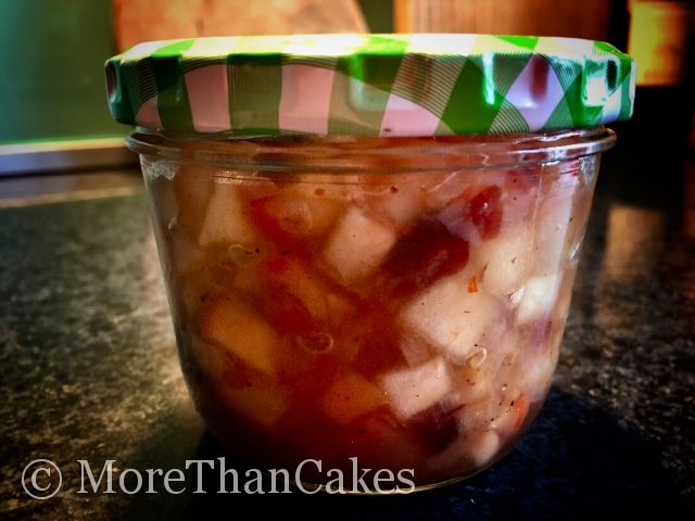 Zutaten für 7 Gläser je 200 ml: 600 g Äpfel 🍎 (mürbe und säuerlich, wie „Elstar“) 600 g Birnen 🍐 (reife, wie „Williams Christ“) daumengroßer Ingwer 3 Zwiebeln 2 Knoblauchzehen 1 rote Chili 🌶...