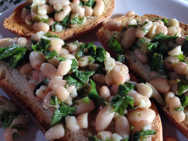 Zutaten für ca. 8 Crostini: 1 Dose Cannellini Bohnen 3-4 Knoblauchzehen 1 Händchen Basilkumblätter 1 Stück Zitronenschale Salz Pfeffer etwas Zitronensaft ca. 3 EL Olivenöl oder mehr nach Geschmack Zubereitung: Die Bohnen abgiessen und...
