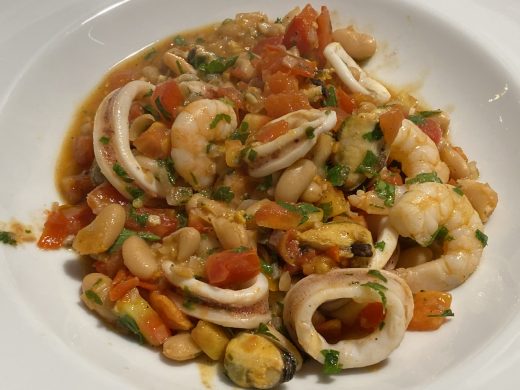 Tomaten mit weißen Bohnen und Meeresfrüchten