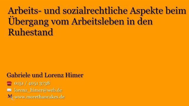 Wir veröffentlichen unseren Vortrag über die gemachten Erfahrungen bei der Reise in den Ruhestand. Der Schwerpunkt dieser speziellen Ausarbeitung liegt in der Thematik „Arbeits- und sozialrechtliche Aspekte beim Übergang vom Arbeitsleben in den Ruhestand“....
