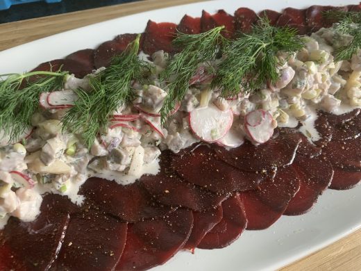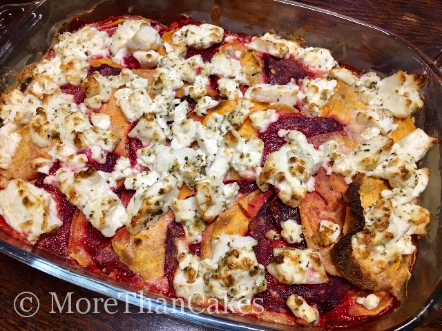 Zutaten für eine Auflaufform 20×30 cm: 2 frische Rote Bete 1 große Süßkartoffel 200 g Fetakäse 5 cm Ingwer 200 g Schmand oder Creme fraiche 200 ml Schlagsahne 2 Knoblauchzehen 2 Frühlingszwiebel 1 Chili...