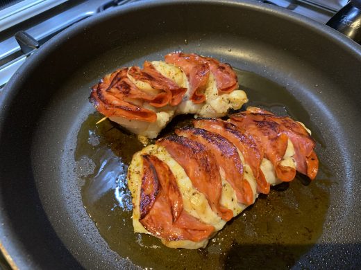 Zutaten für 2 Personen: 6 Seeteufelmedaillons (je 60 g, aus dem dicken Mittelstück; küchenfertig gehäutet) 6 Scheiben Parmaschinken Fischgewürz Olivenöl Salz 🧂 Pfeffer 1/2 Hokkaido-Kürbis 1 Zwiebel 🧅 1/2 Chili 🌶 Saft einer 1/2...