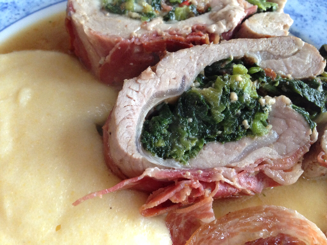 Gefülltes Schweinefilet mit Spinat und Gorgonzola