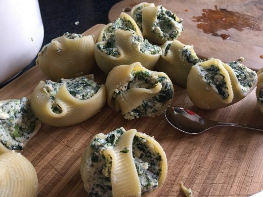 Ricotta und Spinat ist eine herzhafte, leckere Kombination, ideal für eine Füllung, nicht nur für große Muschelnudeln. Von einer leckeren Tomatensauce umgeben, genießen Sie  ein fantastisches Essen. Zutaten für 8-10 Personen: 16 große Muschelnudeln...
