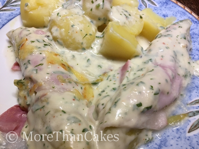 Zutaten für 4 Portionen: 4 El Butter 4 El Mehl 600 ml Milch 1 Bund Petersilie Salz Pfeffer Muskat Piment d‘Espelette 4 Chicorée 8 Scheiben gekochter Schinken 150 g geriebener Gouda Zubereitung: Backofen auf...
