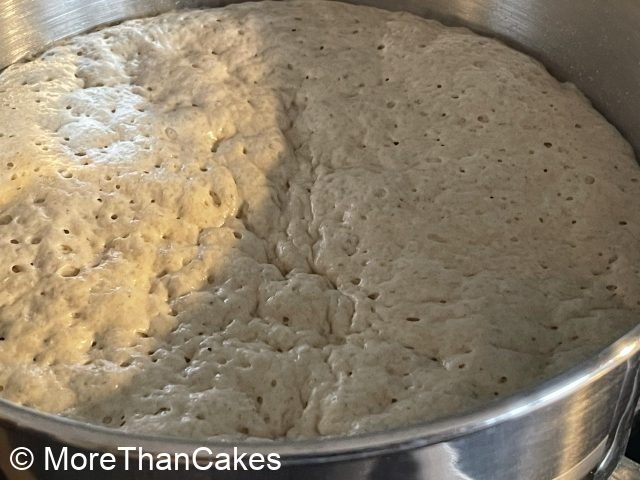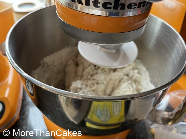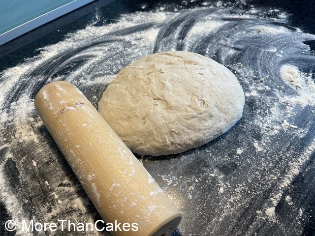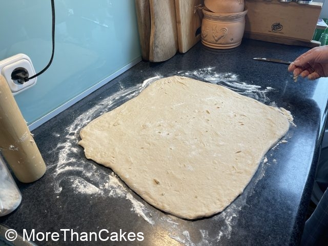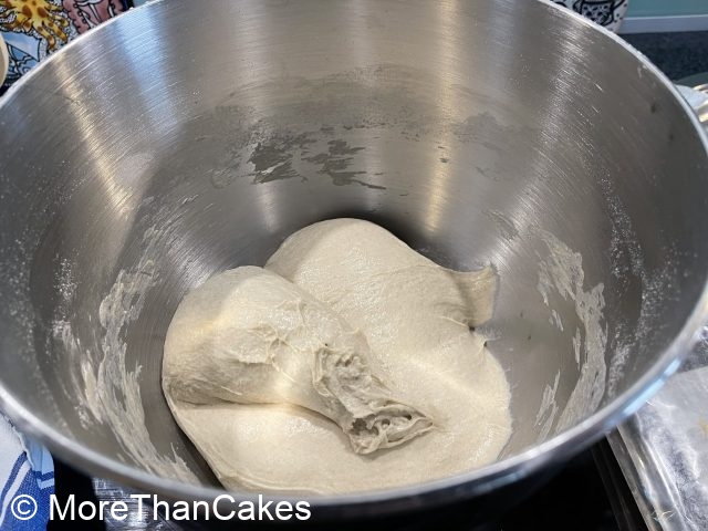 Verkneten Sie alles mit der KitchenAid auf Stufe 1 mit dem Knethaken zu einem glatten Teig, den Sie mit einem sauberen Geschirrtuch abgedeckt etwa eine Stunde an einem warmen Ort gehen lassen.