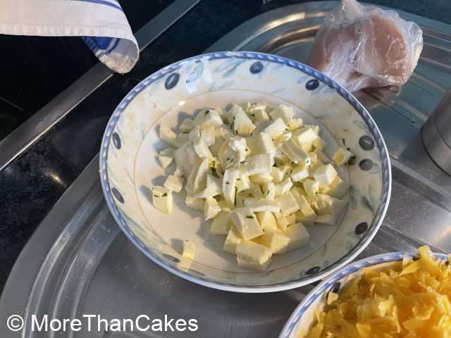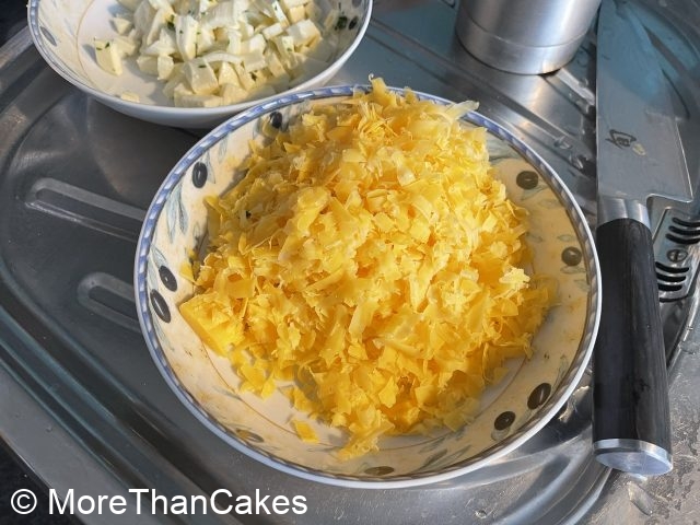 Danach im Ofen etwa 35 Minuten backen, dann eine Viertelstunde abkühlen lassen und aus der Form nehmen.